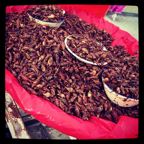 13) Fried, spicy grasshoppers are a popular snack. (chapulines) I don’t eat them, since I’m vegetarian. Vendors offer them to you on almost every street corner and in the markets.