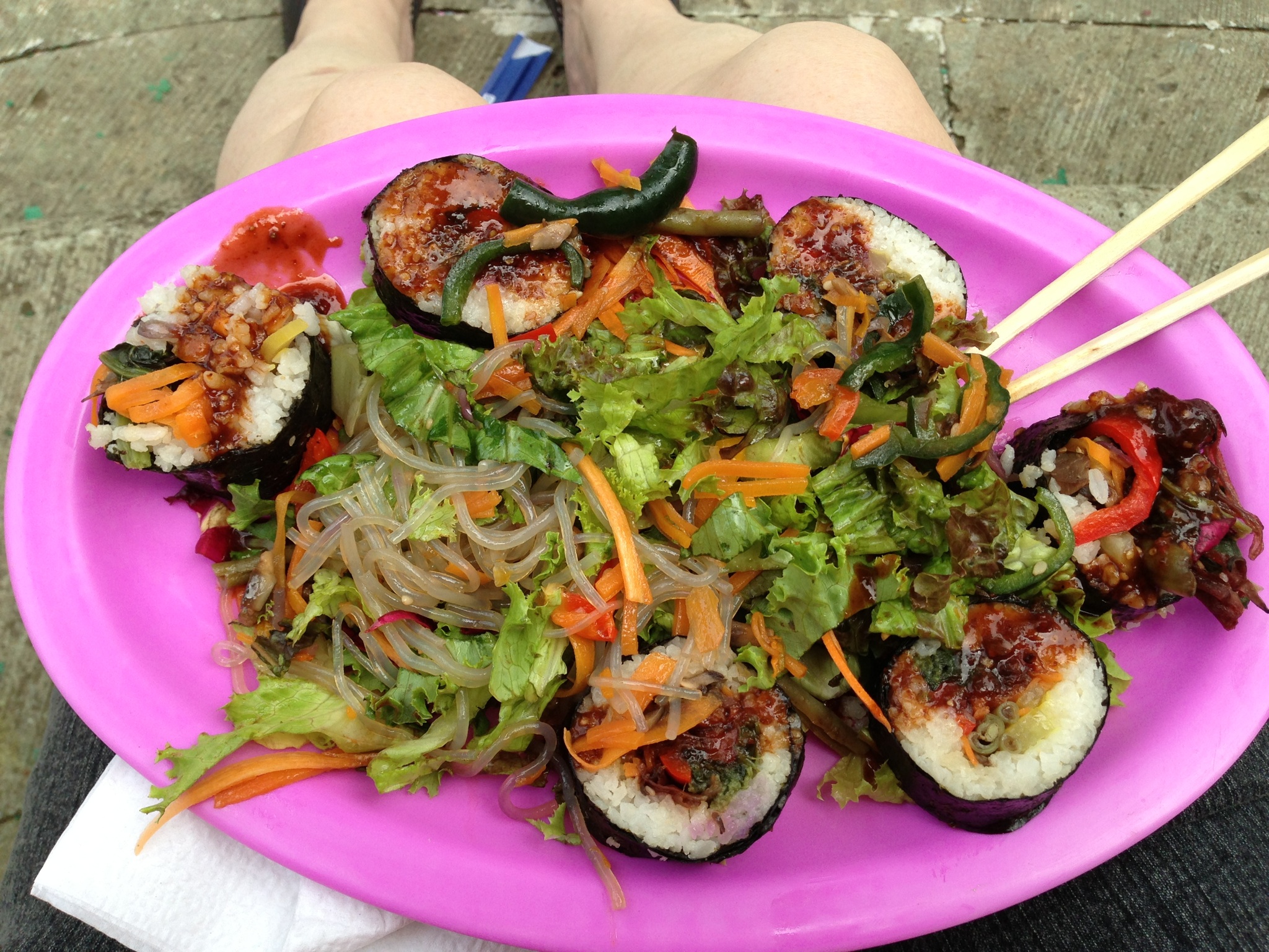 15) My favorite outdoor market is Pochote Organic Market, held on Fridays and Saturdays. You can get a variety of prepared foods, even vegan sushi (with hot chili sauce, of course!) I was about to say no when I saw them adding hot sauce to my sushi, but I decided to try it and it was really good!
