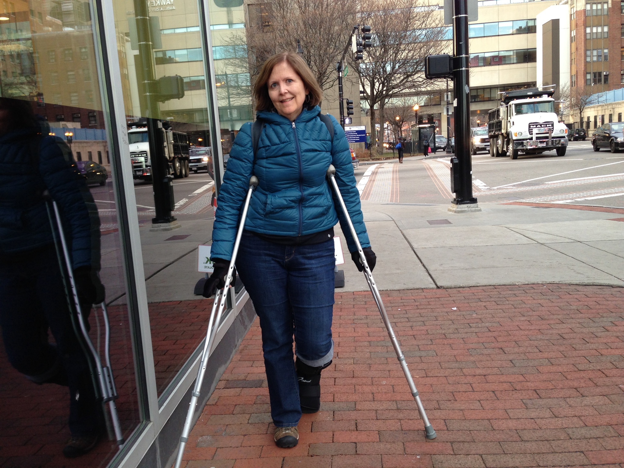 8. You develop more empathy for people with permanent mobility problems. (So many out of order elevators on the Boston MBTA! Crutches in the snow & ice? Forget about it).