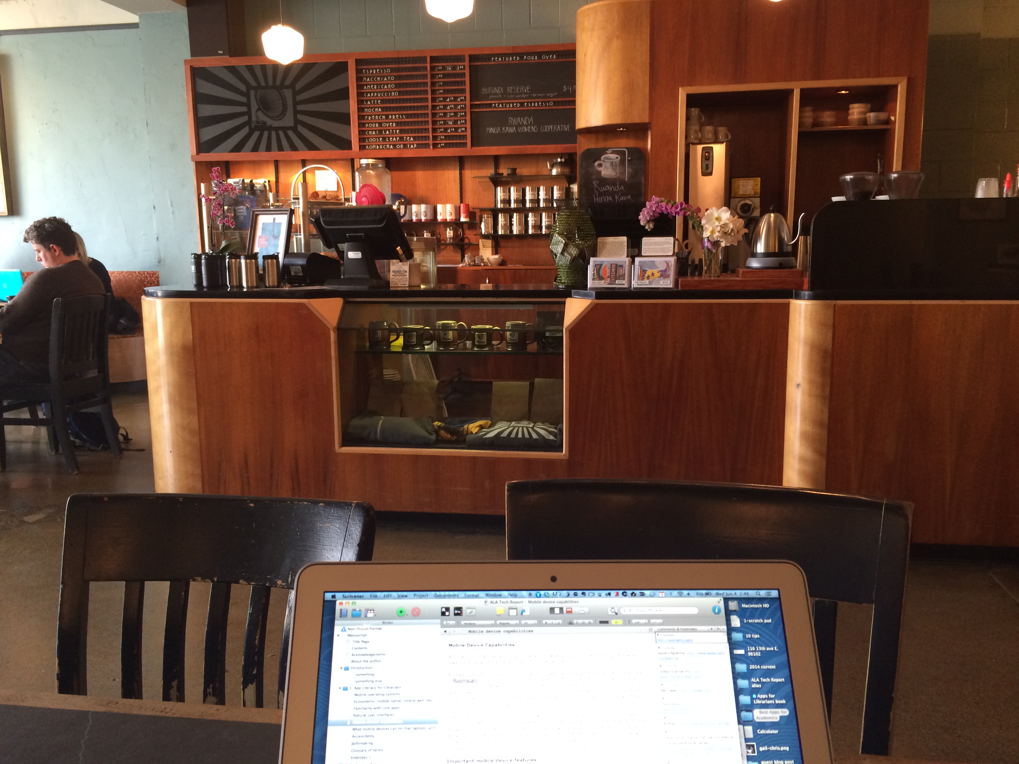– At least six different coffee shops with free Wi-Fi (where I spend most of my time working).
